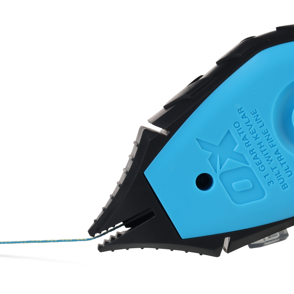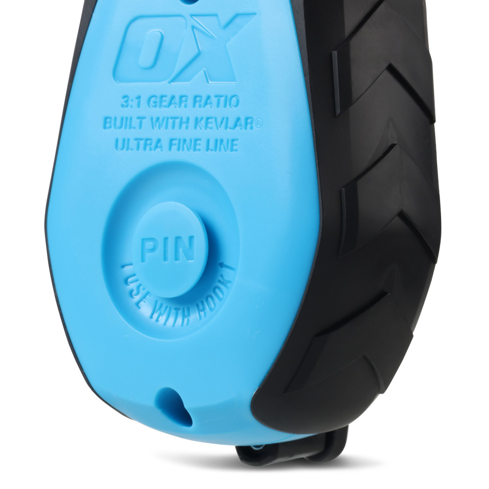 The OX Pro Series Precision Chalk Reel features a durable ABS body with a rubber overmould for enhanced grip and protection. This value pack includes 118ml/4oz of refill chalk and 50’/15m ultra fine KEVLAR chalk line reel featuring Integrated hook storage and a pin & hook design allow for quick snaps, while the 3:1 robust gear ratio ensures efficient reeling. The clutch release makes reeling effortless.