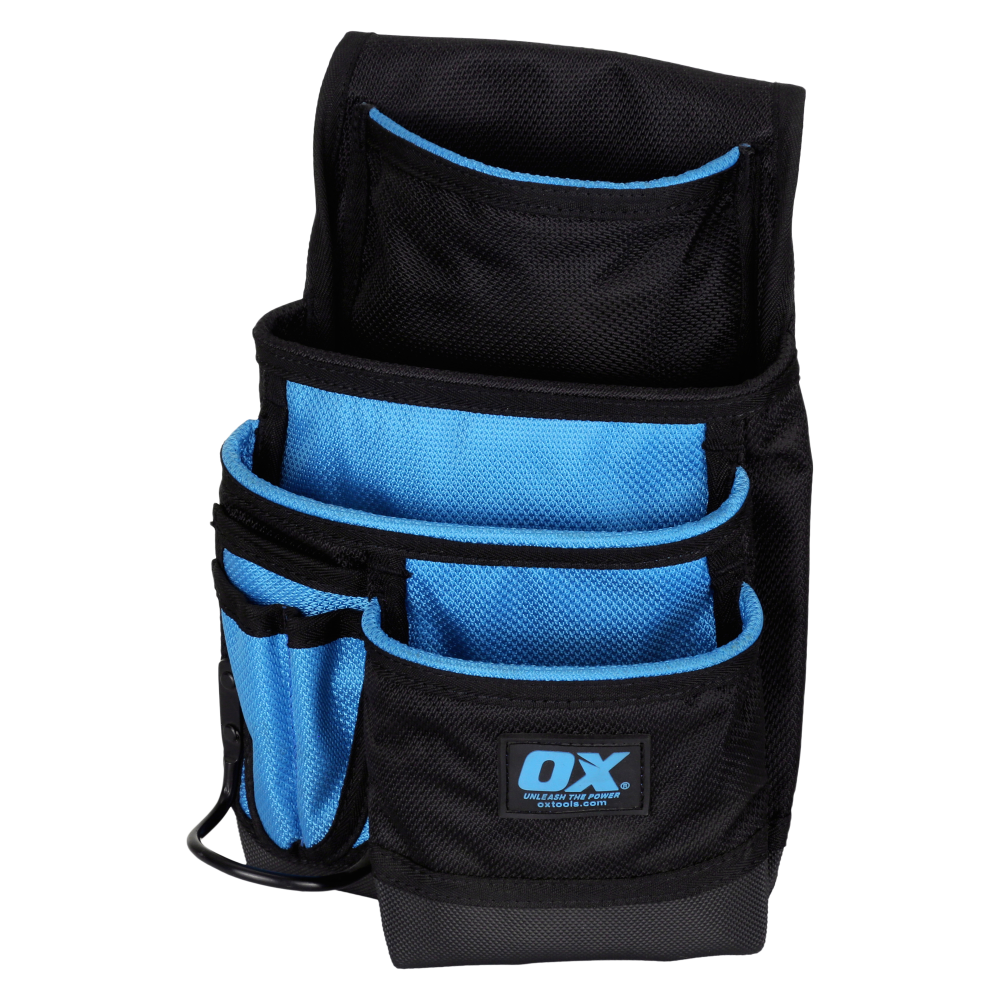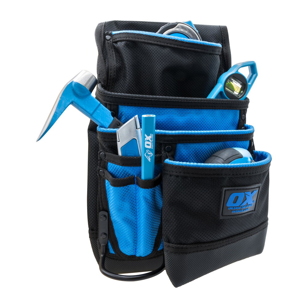 Built with the tradesman in mind, the OX Pro Dynamic Nylon 7 Pocket Pouch with Hammer Holder is tough, dependable, and comfortable. Crafted from 1680D Nylon with PVC coating, the pouch is UV & Water Resistant. 1 Primary Pouch, 3 Secondary Pouches, Hammer Holder, & Pencil Holders.