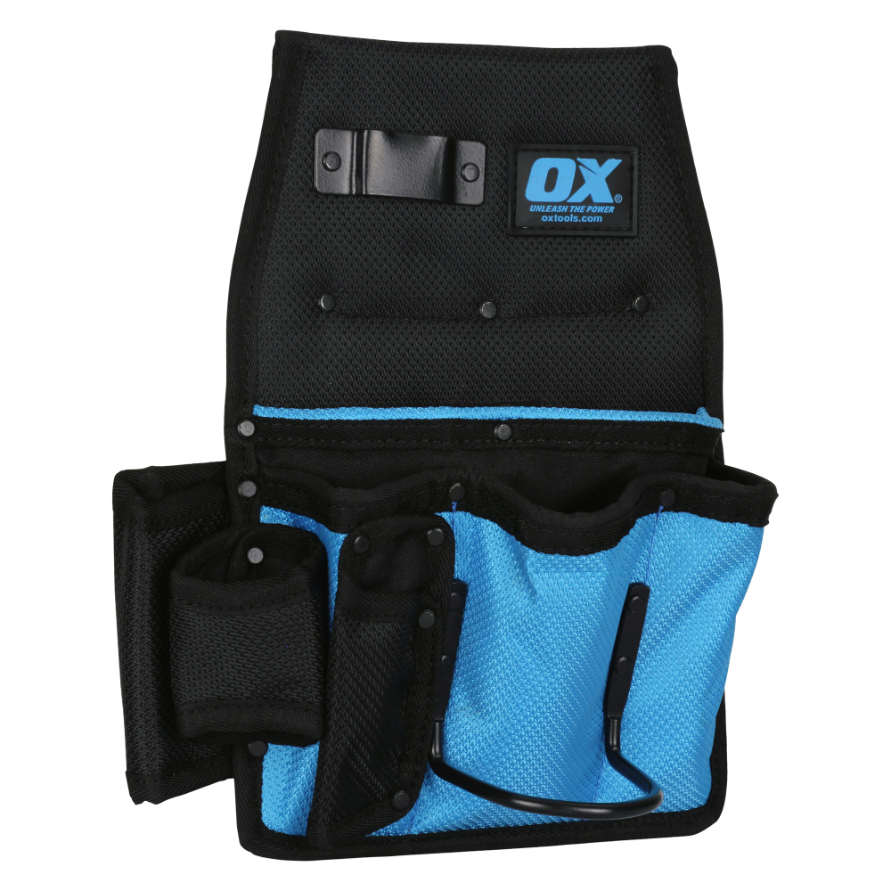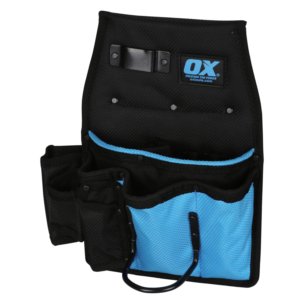 The OX Pro Pro Dynamic Nylon Drywall Pouch is tough, dependable, and comfortable. Crafted form 1680D Nylon with PVC coating. The stitching is reinforced, and the rivets are made from iron and electrophoretic coated for extreme durability at common stress points. Includes 4 dedicated pockets, 3 Tool Holders, Tape Measure Holder, Hammer Holder and pencil compartments.