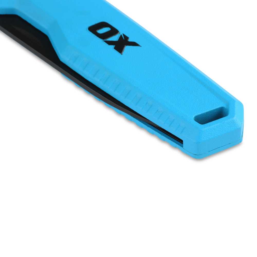 Designed for the everyday pro, the OX Pro Folding Pocket Knife also features a durable belt clip for secure storage, and a tether/lanyard hole for attachments—ideal for working at height or keeping your gear close. Lightweight, sharp, and built to last, this folding pocket knife is everything you need from a jobsite essential.
