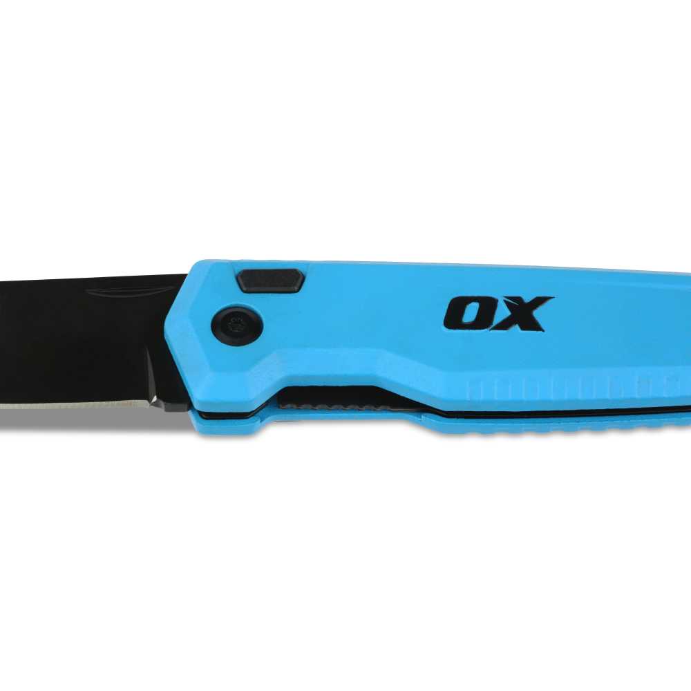 The OX Pro Folding Pocket Knife delivers reliable pocket knife performance in a compact folding form. Featuring a sharp blackened stainless steel blade with hardened, tempered construction for clean cuts and long-lasting edge retention. The blade is fully resharpenable, making it a sustainable choice for tradespeople.