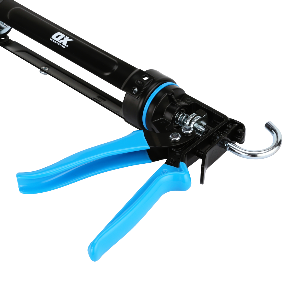 Our OX Grip handles are ergonomically designed and dipped in rubber, providing a comfortable and secure grip for all day use. The built-in poker is permanently attached and makes starting the caulking effortless. The adjustable dripless mechanism ensures that the caulk does not continue to flow, preventing a mess from being created.