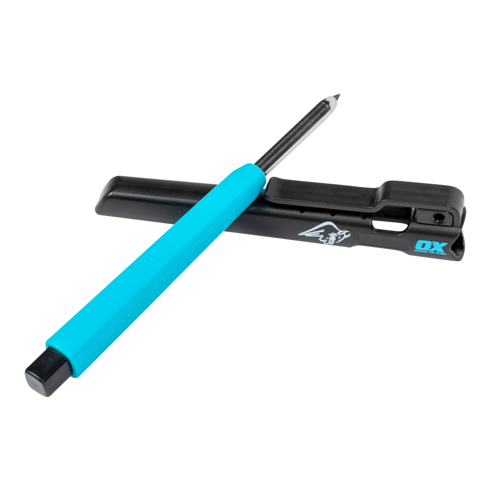The Tuff Carbon Marking Pencil is the ultimate toolbox marking mate. The OX Tuff Carbon Marking Pencil has a spring loaded automatic feed and can write on almost any surface. Robustly constructed from the highest quality Stainless Steel and ABS/PP it includes a lead sharpener built into the cap plus a belt clip for convenience.