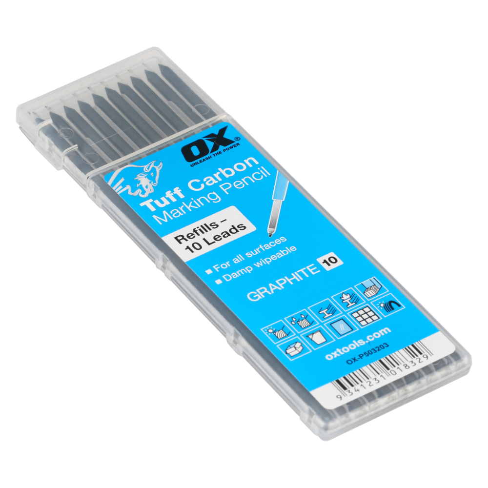 Built with the tradesman in mind, OX Tools Pro Tuff Carbon Pencil Leads are an essential set to a professional woodworker or DIY enthusiast due to its durability and ability to write on almost any surface. Whether you are aiming to mark wet or dry surfaces, this pack of graphite lead replacements can do the job for you and are damply wipeable. They are 2.8mm long and are ideal for deep hole marking and general-purpose construction marking, making a great versatile product.