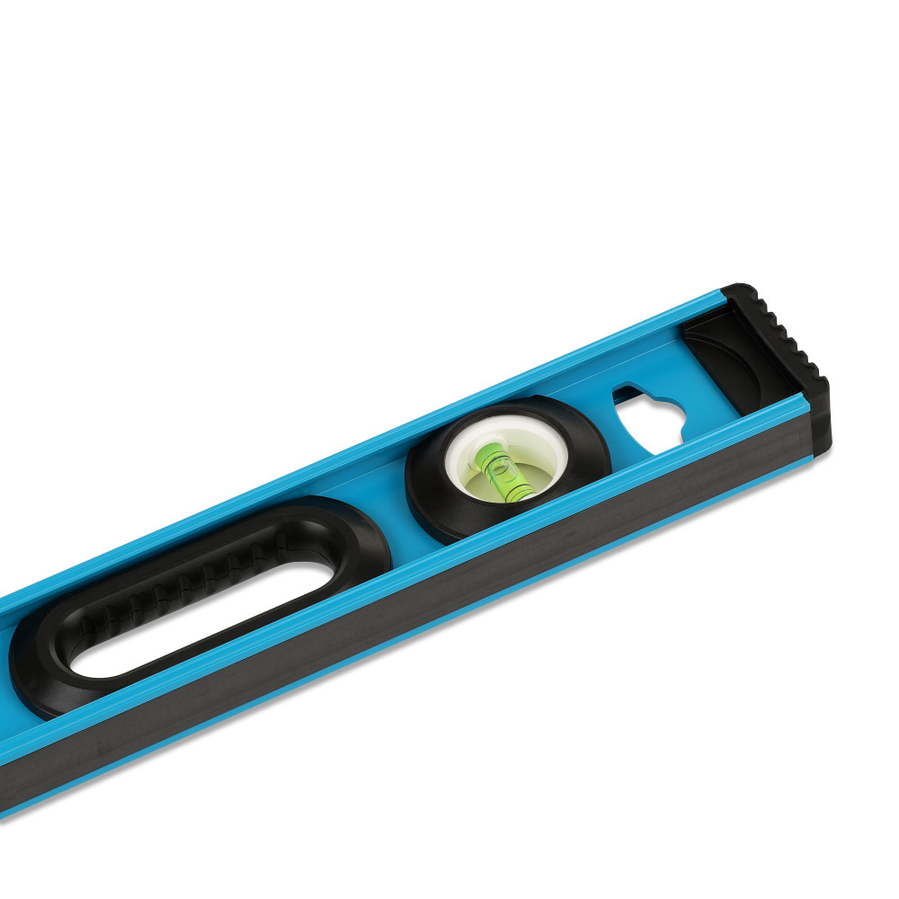 The OX Trade I-Beam Levels are designed to be rugged and dependable. It features a vial for level, plumb, and 45 degree angles. Rubber end caps protect the level from shocks, bumps and drops.