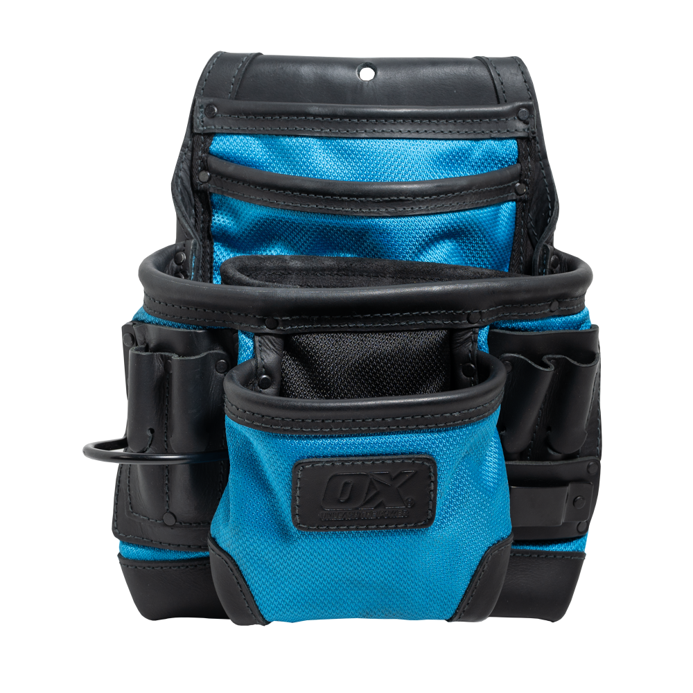 The OX Ultimate 10-Pocket Leather & Nylon Fastener Pouch is tough, dependable, and comfortable. It is constructed from a combination of 1680D ballistic nylon and top-grain leather with PVC coating. Kevlar is a key component of the pouch. The pouch includes Kevlar reinforced double row stitching as well as a Kevlar reinforced pouch bottom. This Kevlar design allows this pouch to handle the rigors of any jobsite.