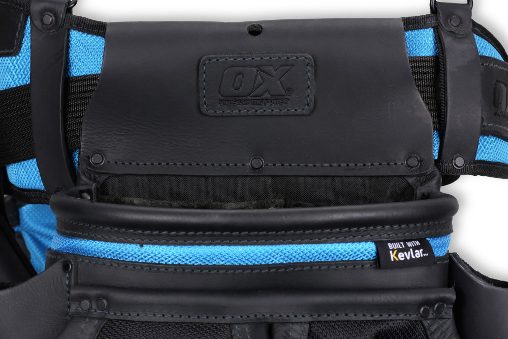 The OX Ultimate 4-Piece Leather & Nylon Construction Rig is tough, dependable, and comfortable. Constructed from a combination of 1680D ballistic nylon and top-grain leather with PVC coating. Kevlar is a key component to this set up. The rig includes Kevlar reinforced double row stitching as well as Kevlar reinforced pouch bottoms. This Kevlar design allows this rig to handle the rigors of any jobsite.