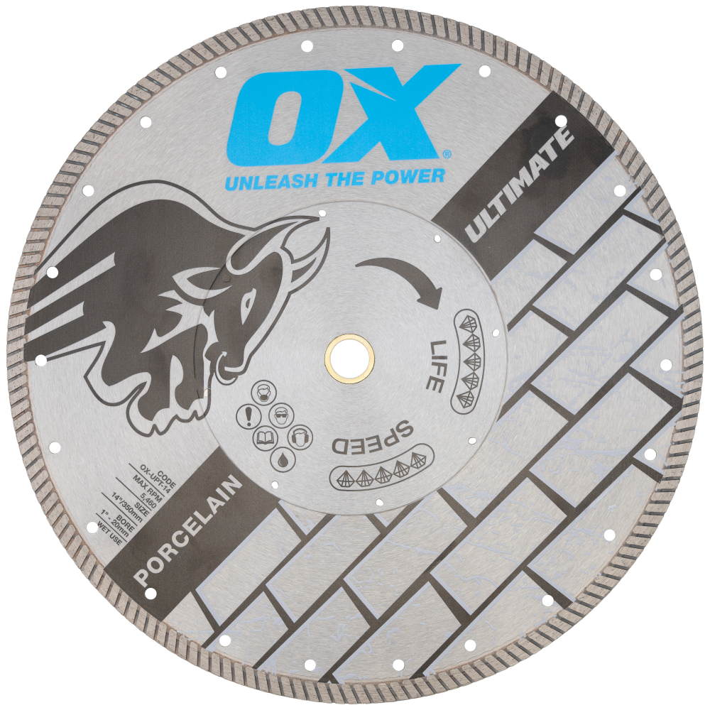 Built with the tradesperson in mind, the OX TOOLS UPT porcelain blade is specifically designed for cutting a variety of outdoor and some indoor porcelain, as well as vitrified/rectified outdoor tile.